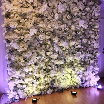 Beautiful Flower wall comes in all white flowers used as a mixture of peony, rose, hydrangeas and greenery accents.