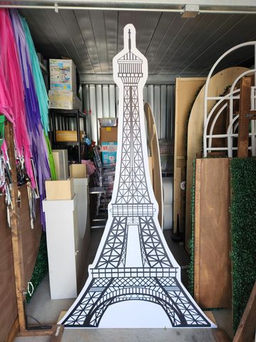 Add a touch of Parisian charm to your event! This elegant 7 ft tall Eiffel Tower is crafted from wood and finished with a black-and-white decal for a stylish, photo-ready look. Cut to shape and full of character, it’s perfect for Paris-themed parties, bridal showers, or romantic backdrops.