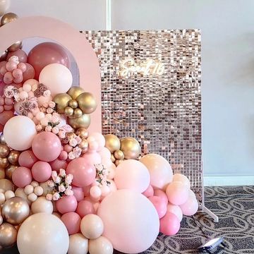 4 ft x 6 ft panel available in gold, silver, light pink, rose gold, and black. Perfect for adding sparkle and glam to any event!