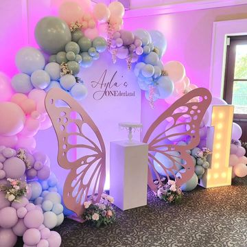 Add a magical touch to your event with these dreamy 5 ft tall butterfly wings! Rented as a set of two, they’re perfect for fairy garden themes, whimsical photo ops, or enchanted birthday backdrops. Currently in soft pink—but can be painted to match your theme upon request.